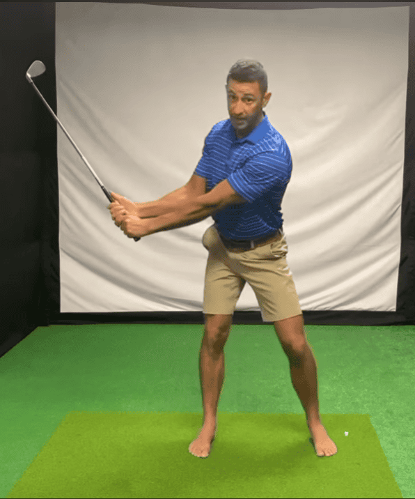 Instead, focus on allowing your body to move naturally while staying balanced throughout the swing.