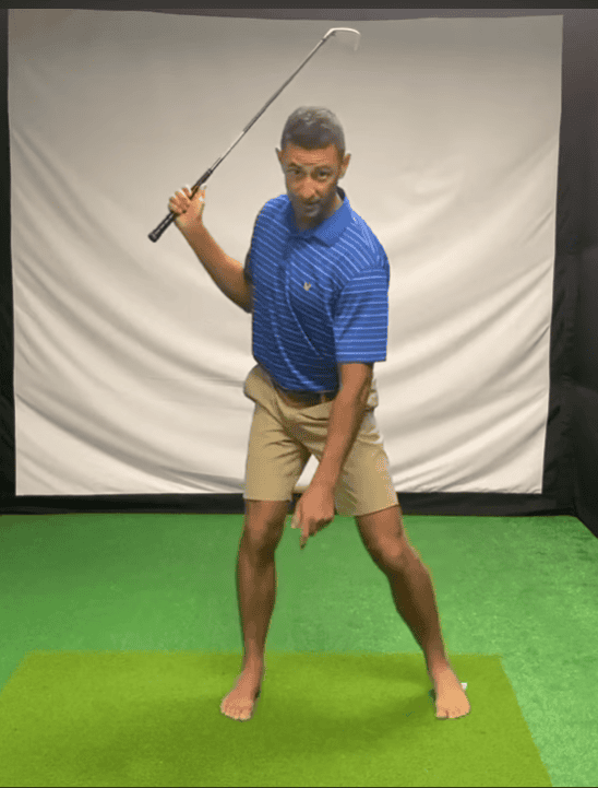 As you transition from the backswing into the downswing, feel your weight shift into the lead leg.